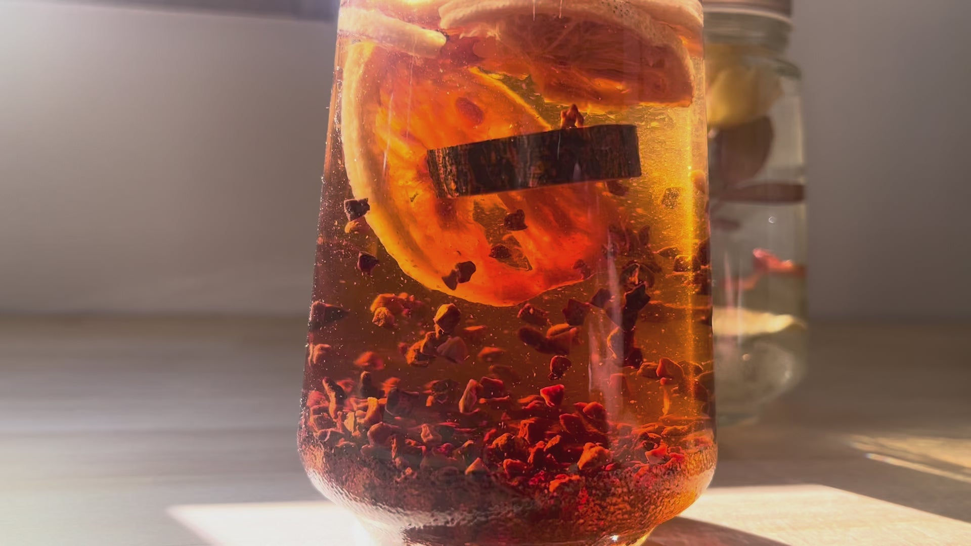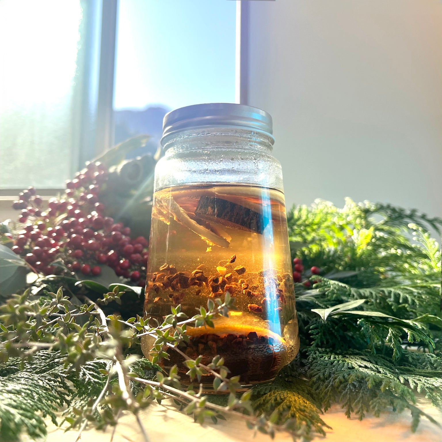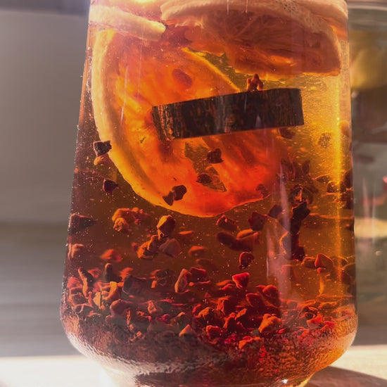 東京都・檜原村の深い森から届けられた、香り高い野草やドライフルーツ。 それらを瓶に納め、お酒を注ぎ、素材がゆっくりと琥珀色に染まっていくのを眺める。
