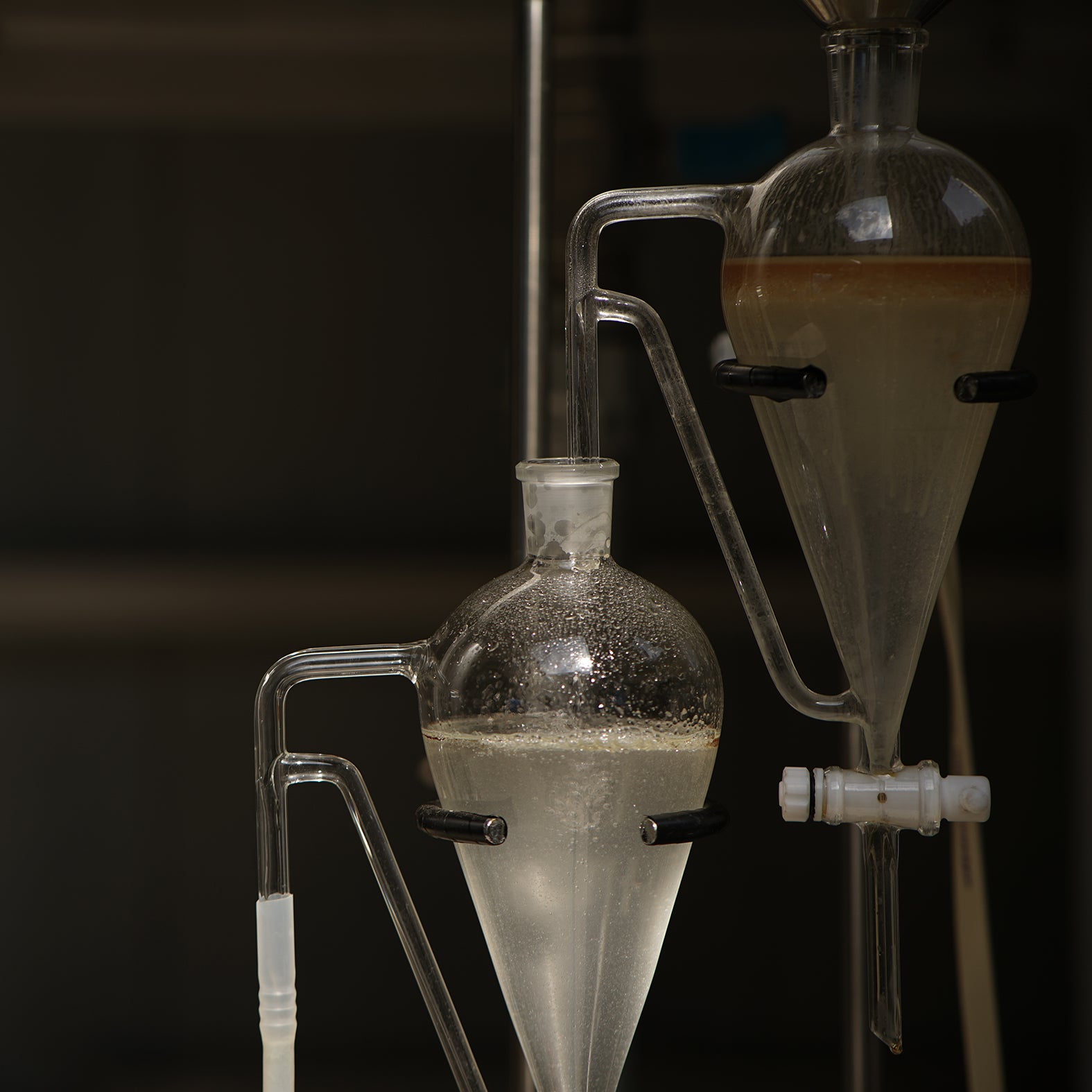 東京都檜原村の急峻な山々で、何十年もの歳月をかけて大地に根を張り続けてきたヒノキ。その生命力の源である「幹(芯材)」から一滴ずつ抽出されたこの精油には、揺るぎない力強さが宿っています。