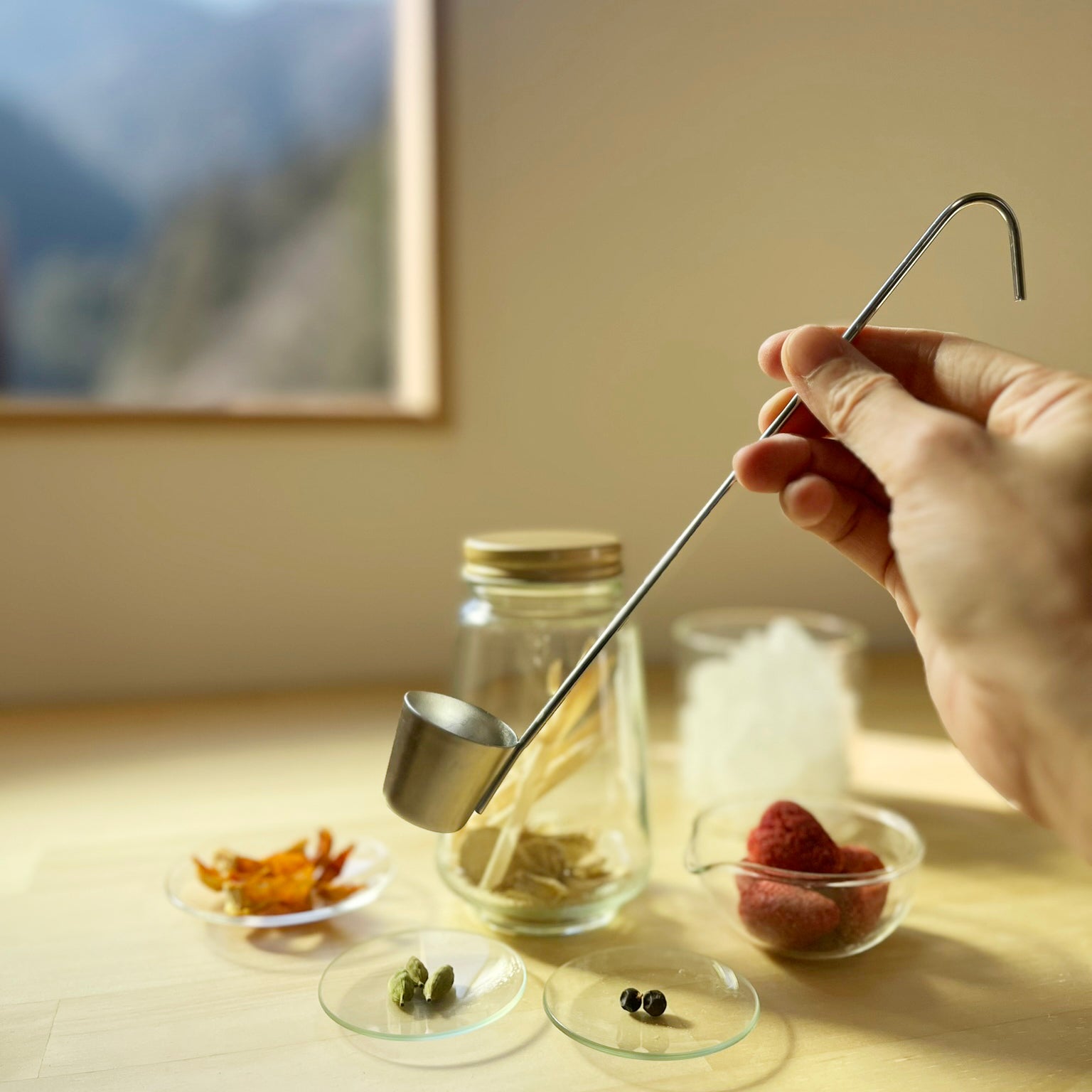 金属加工の聖地・新潟県燕市の職人が手掛けた「15ccの杓子」を同梱しました。一生モノの道具で丁寧に掬い、お湯を注ぐ。その一連の所作が、騒がしい脳を休めるスイッチになります。